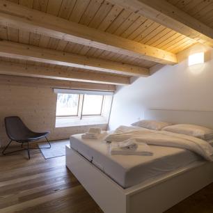 Ein Badezimmer, ein Schlafzimmer und ein weiteres offenes Schlafzimmer mit Queen-Size Betten befinden sich im oberen Stockwerk.