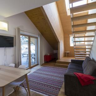 Unser Penthouse mit Terrasse misst ca. 70 m² und präsentiert sich auf zwei Ebenen.
